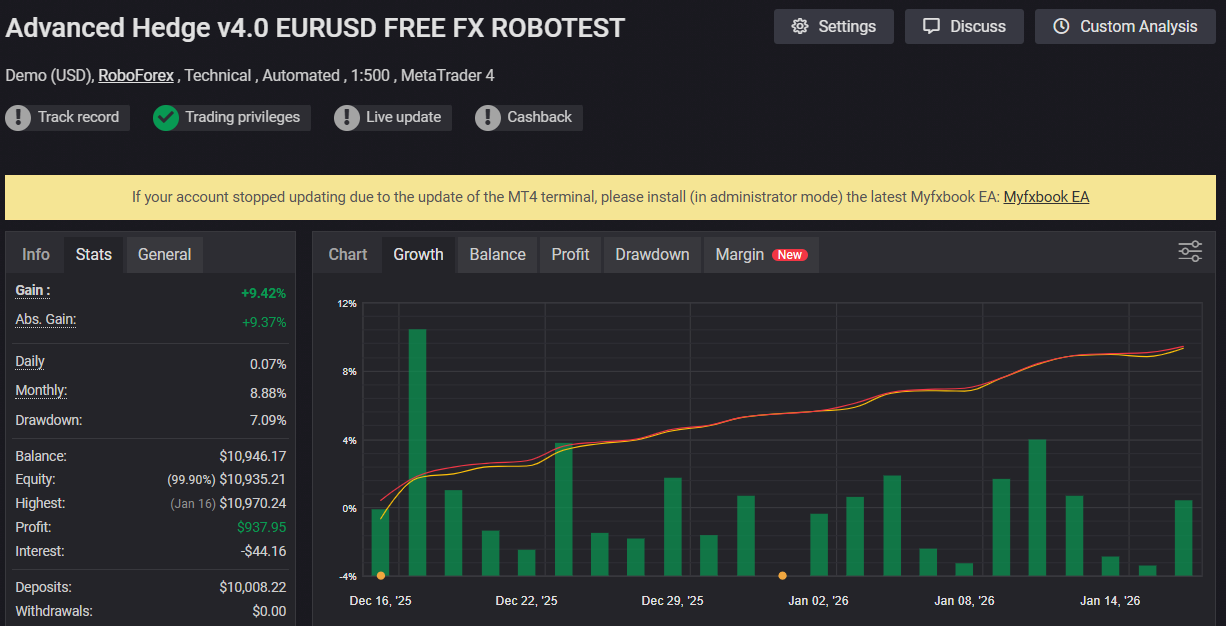 Advisor Name: Advanced Hedge v4.0 EURUSD with set MT4