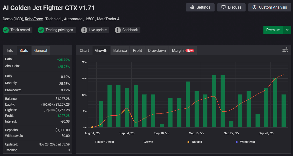Advisor Name: AI Golden Jet Fighter GTX v1.71 MT4