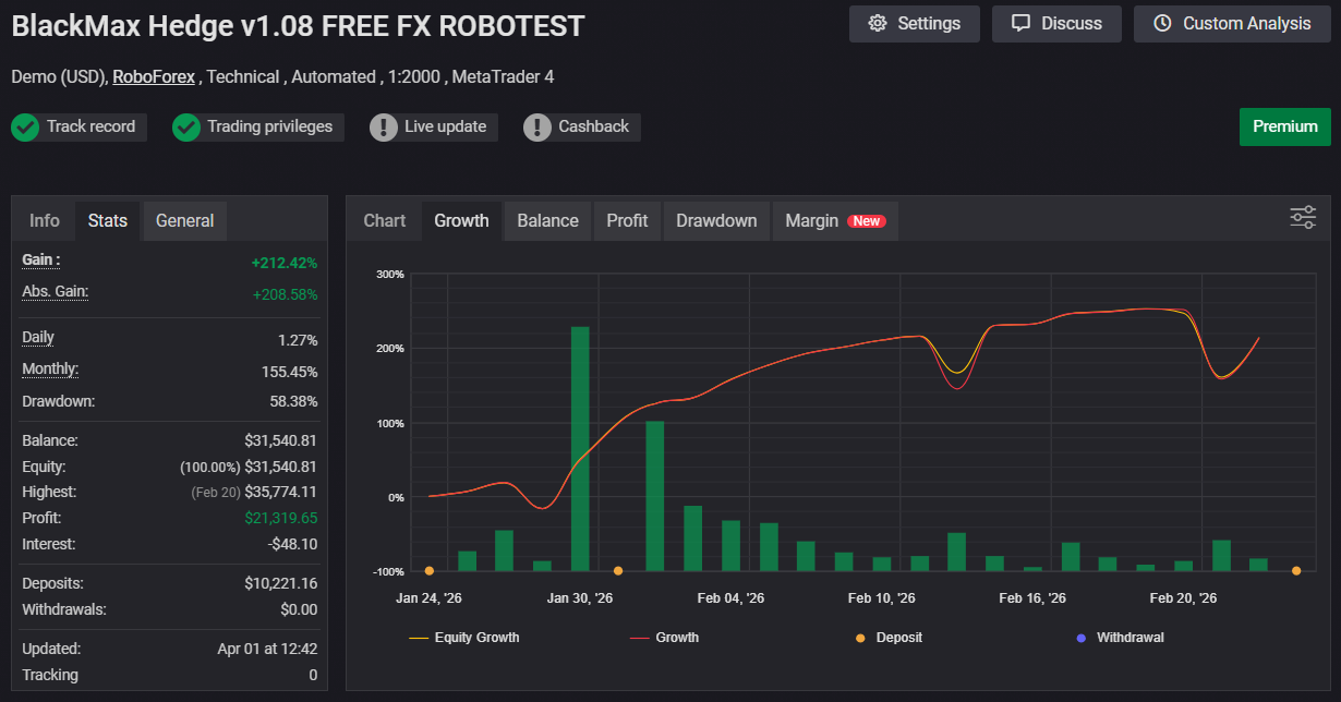 Advisor Name: BlackMax Hedge v1.08 MT4