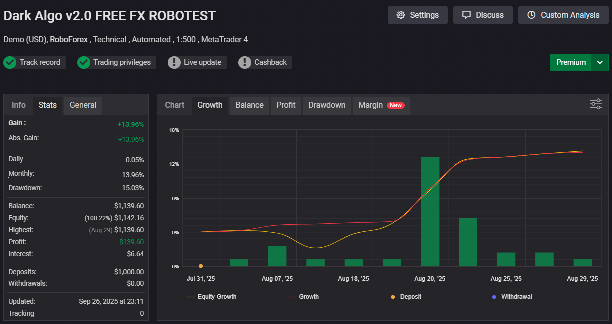 Advisor Name: Dark Algo v2.0 MT4