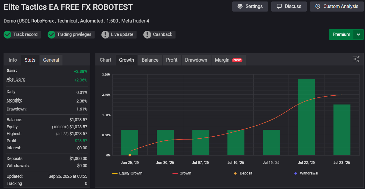 Advisor Name: Elite Tactics EA MT4