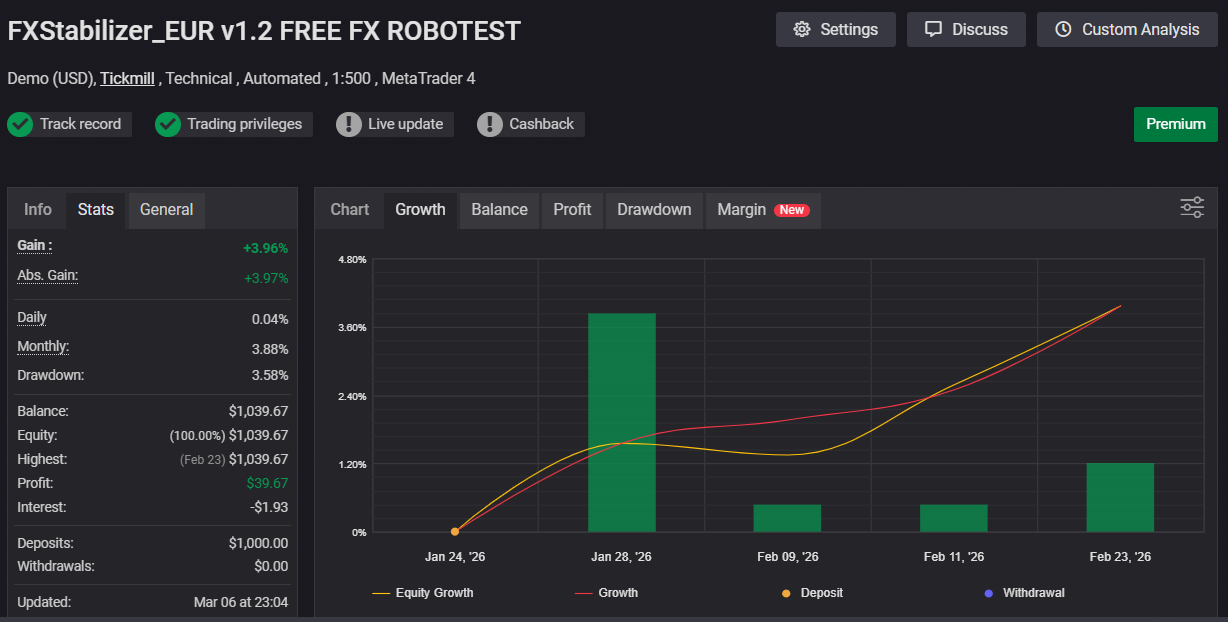 Advisor Name: FXStabilizer_EUR v1.2 MT4