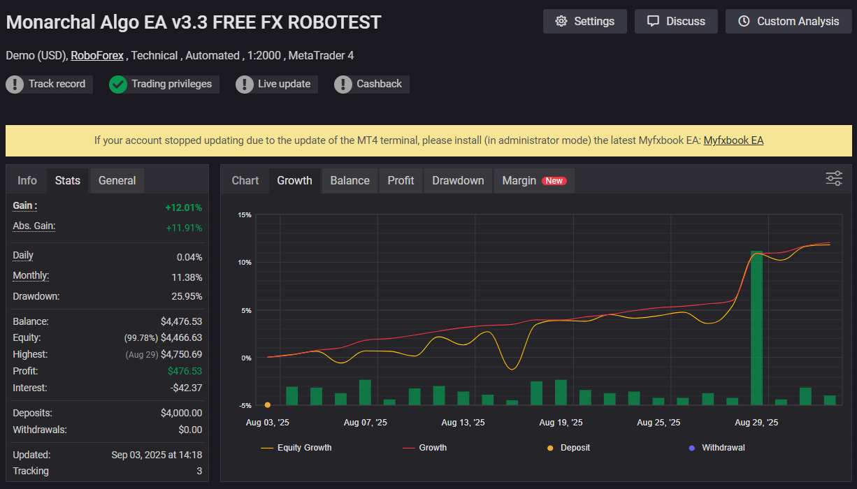 Advisor Name: Monarchal Algo EA v3.3 MT4