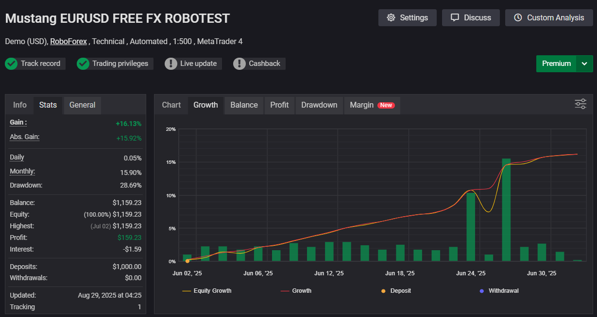 Advisor Name: Mustang EURUSD MT4