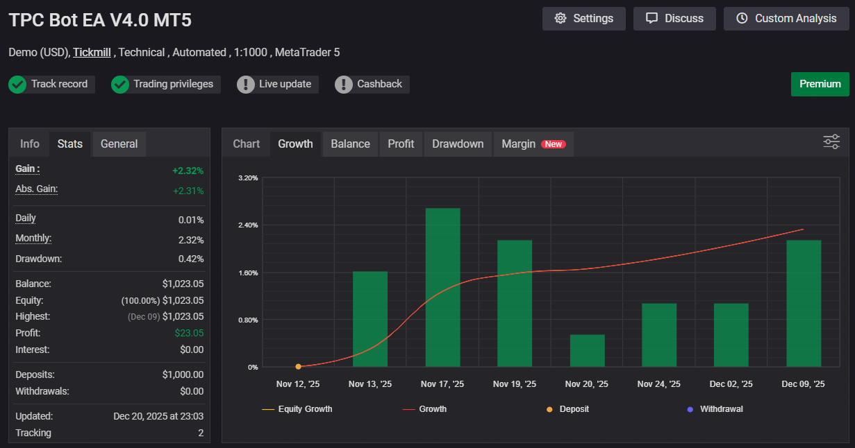 Advisor Name: TPC Bot EA V4.0 MT5