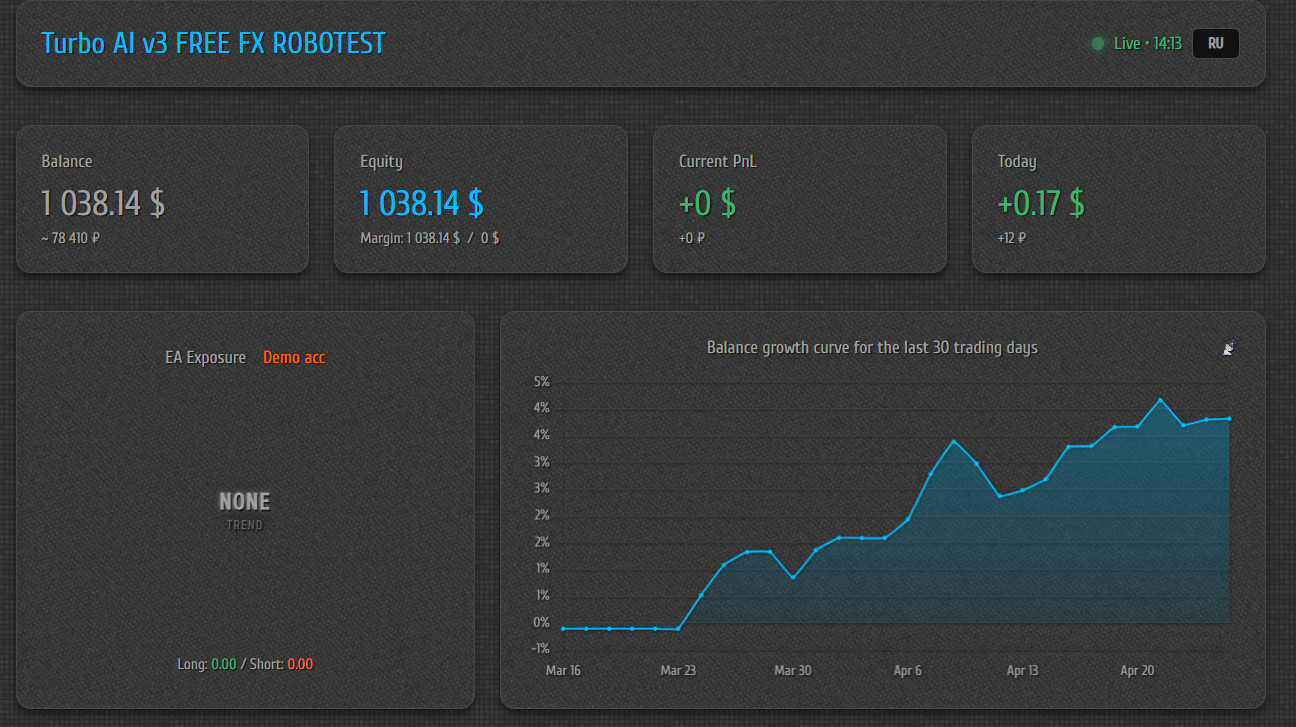 Settings: turbo xauusd h1.set (Watch the set in the WinRAR archive with the advisor)