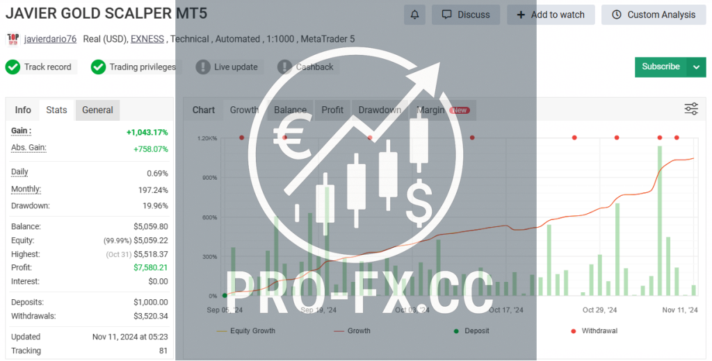 Javier Gold Scalper v2 EA MT5 is a fully automated trading system tailored for gold (XAUUSD) on the MetaTrader 5 (MT5) platform. It uses a scalping strategy combined with advanced algorithms and technical analysis for precise trade execution. Designed to exploit gold’s inherent volatility, the EA focuses on aggressive short-term trades to benefit from rapid market fluctuations. With full access to the source code, users can personalize strategies, tweak indicators, and adjust parameters, providing extensive flexibility in trading methods and risk management.