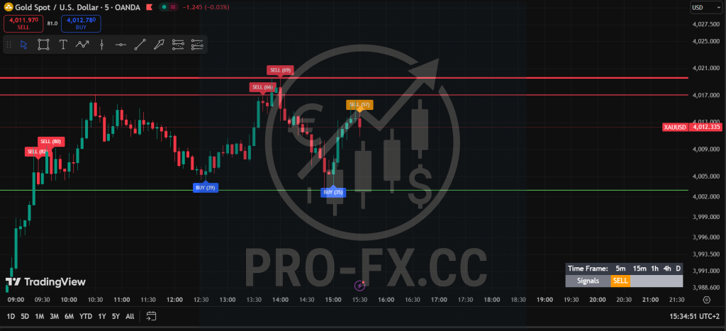 Supports multi-timeframe analysis (5 min, 15 min, 1 hour, 4 hours, and Daily) via the signals table in the lower right corner.